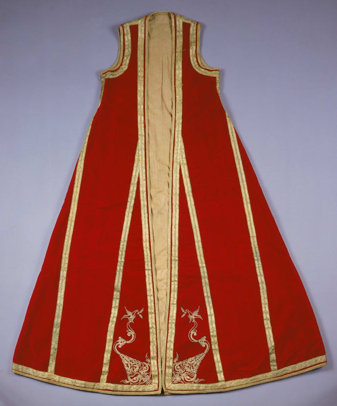 A sleeveless coat like this one was worn by Ottoman Jewish women residing in the Balkans beneath a coat with long sleeves.