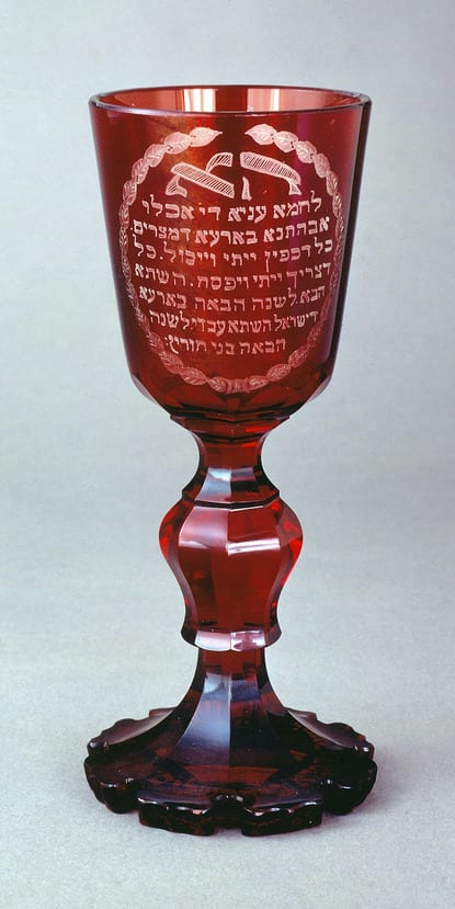 - Glass: free-blown, tooled, ruby-flashed and wheel engraved