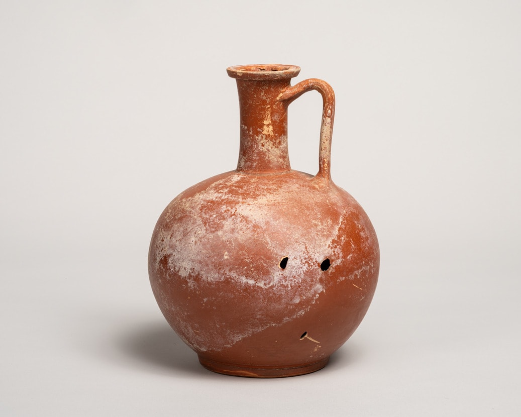 During the Early Roman Period (1st century B.C.E.), a glossy red-slipped pottery called Eastern Sigillata ware began to appear in Israel. It is believed to be a local imitation of the very fine mold-made Samian or Arretine ware produced as luxury items during the Roman Period in Italy and Gaul, some of which also found its way to Israel. The term "sigillata" means "stamped" and generally signifies that the vessel bears a potter's stamp; sometimes the term " sigliata" is used, which means "initialed." Frequently, the local imitations do not bear a stamp.