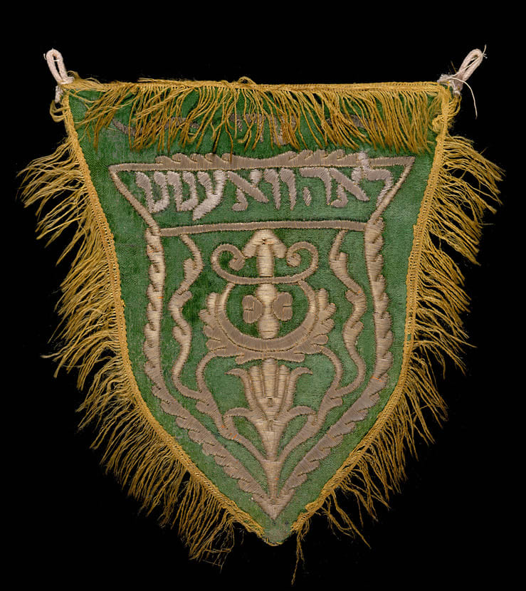 Traditional Jews affix a mezuzah (literally, "doorpost") to the doorframes of all rooms in their homes. The mezuzah is a scroll inscribed with the shema (verses taken from Deuteronomy), one of the central portions of Jewish liturgy. In order to protect the scrolls of their mezuzot from damage, Moroccan Jews placed them under covers made of silver or cloth such as this example, rather than within a case as is the Ashkenazi practice.