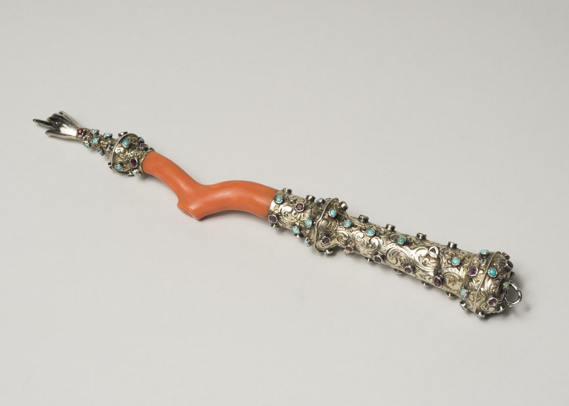 - Silver, coral, and semiprecious stones