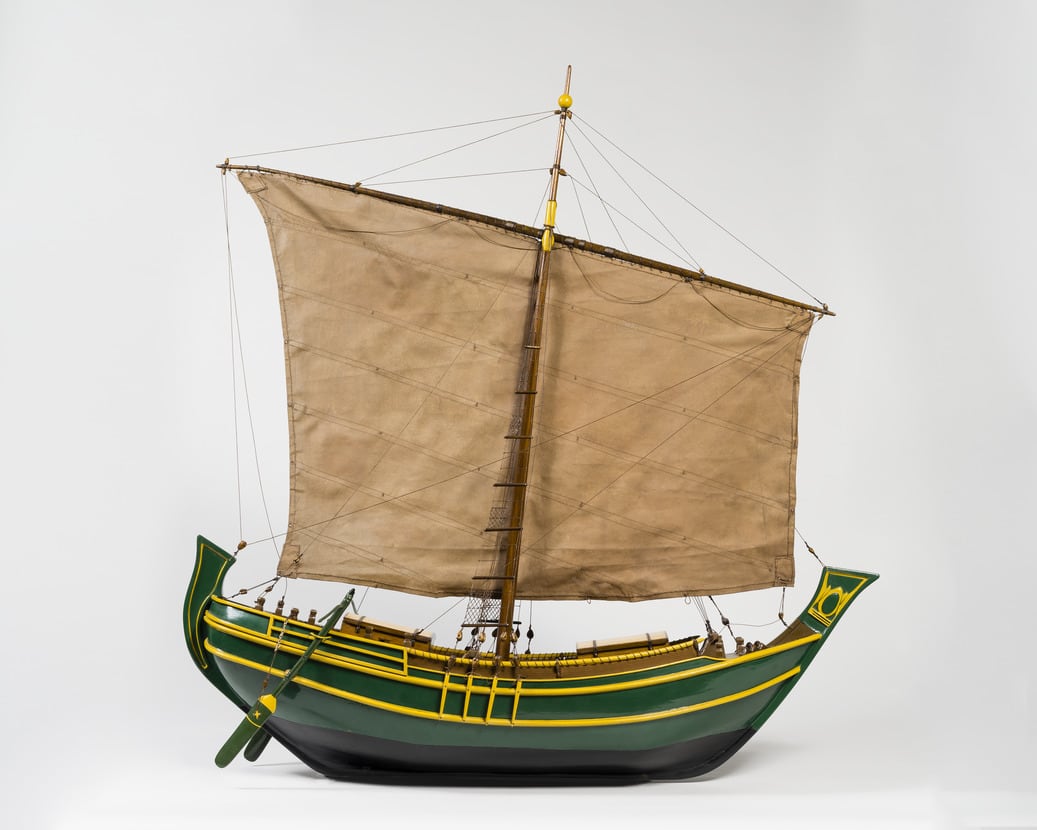 This model ship was commissioned in the 1970s for exhibitions on the antiquities of Israel. Long since detached from that purpose, it remains as a work of fine craftsmanship, resonant with a sense of the distant past—both that of the Mideast and that of the museum.