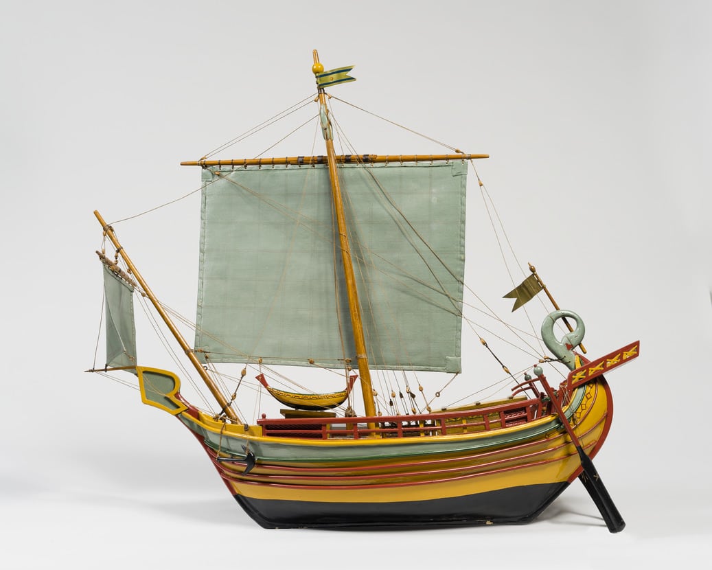 In the 1970s a new director of the Jewish Museum with a passion for the antiquities of Israel mounted a number of exhibitions on the subject. This model ship was commissioned from the Haifa National Maritime Museum for one such show. The Phoenicians of Lebanon were known for their maritime prowess. This replica of a first- to second-century CE merchant vessel from Sidon is based on a depiction found on a stone relief.