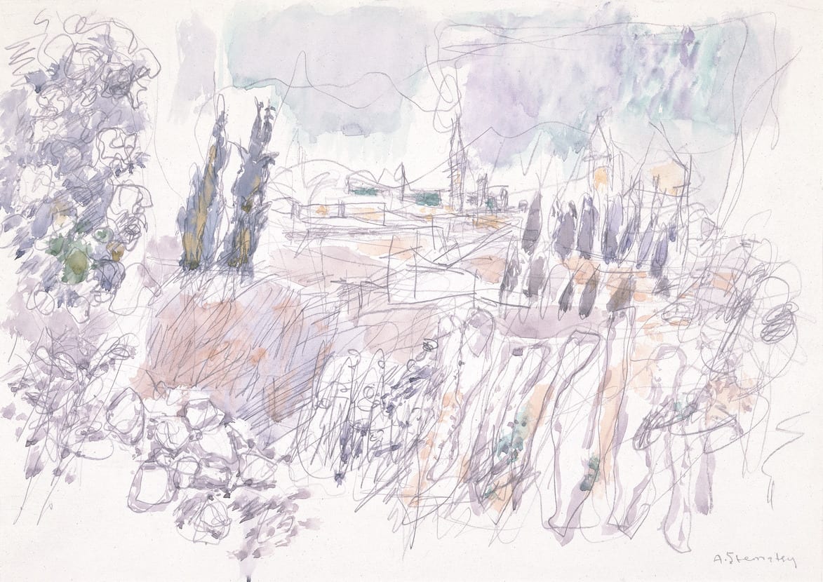 - Watercolor and graphite on paper
