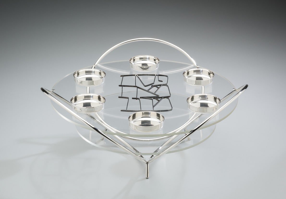 - Silver: formed and spun; lucite tiers; bronze