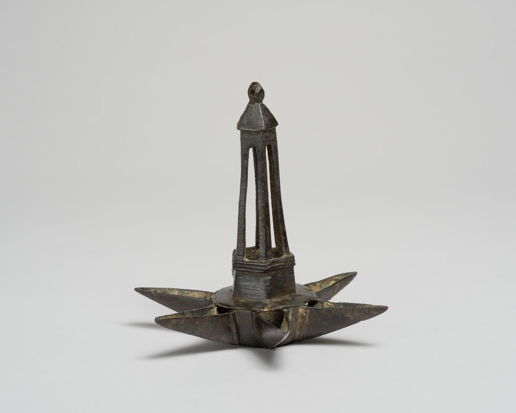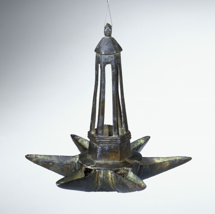 According to the records of the first known owner of the Jewish Museum lamp, Siegfried Strauss, it was excavated in the Jewish quarter of Deutz, a city across the Rhine from Cologne. There is a Star of David incised on the underside of the star-shaped section, but its use in the fourteenth century does not necessarily indicate Jewish ownership.