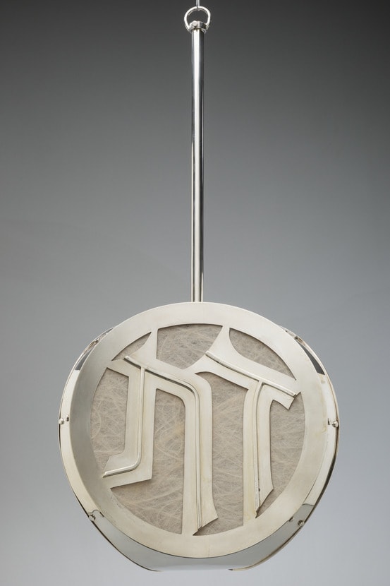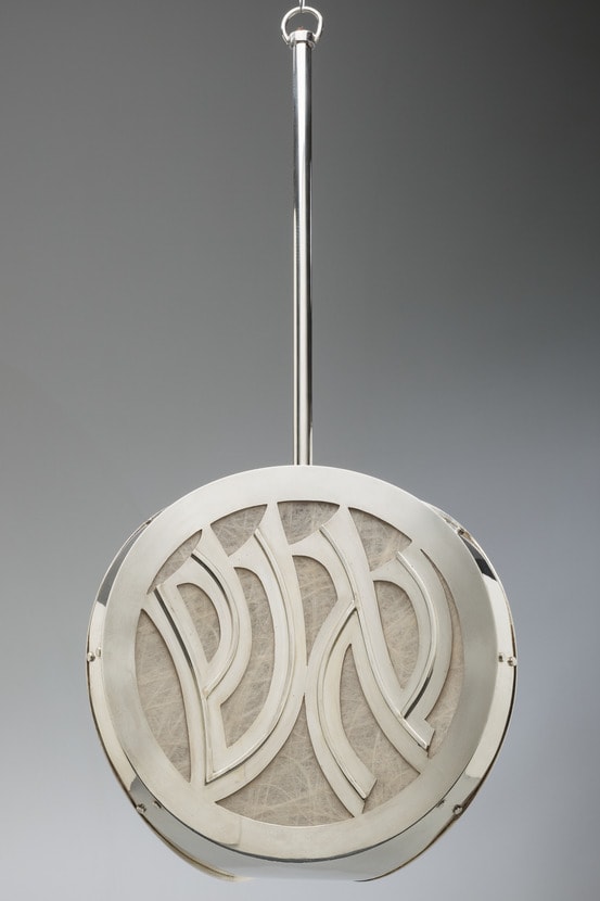 This lamp is inscribed in Hebrew with the phrase “a fiery law unto them,” a biblical quotation from Deuteronomy 33:2.