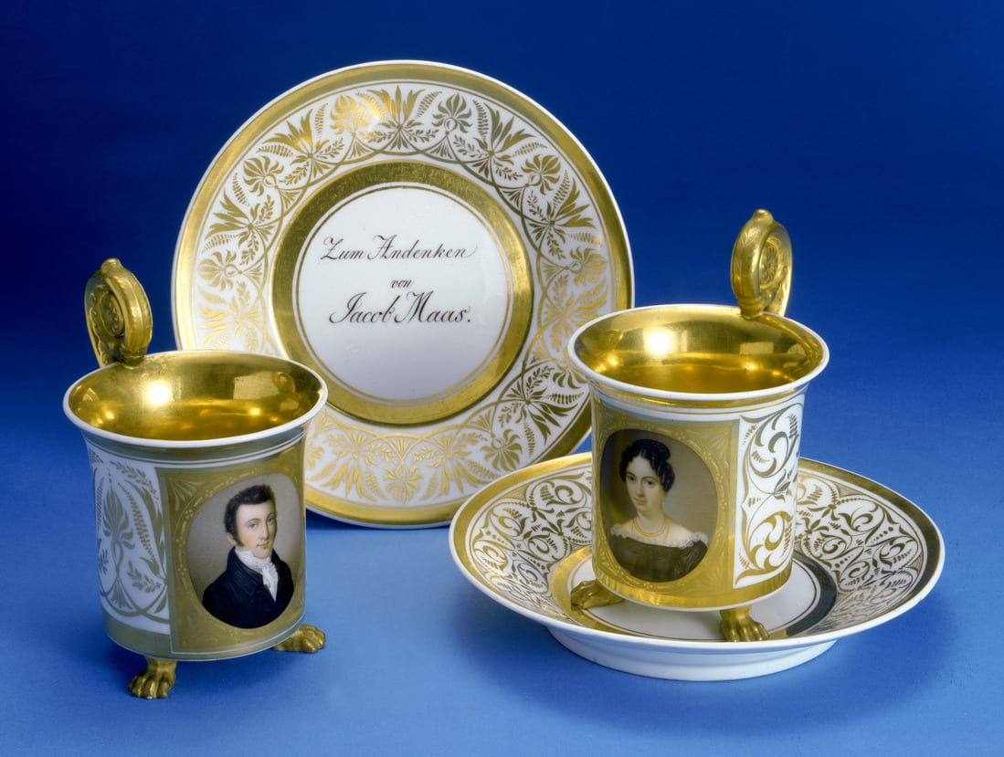 - Each Cup: 5 3/16 × 4 1/2 × 3 1/8 in. (13.2 × 11.4 × 7.9 cm); Each Saucer: 1 1/4 × 7 1/8 in. (3.2 × 18.1 cm)