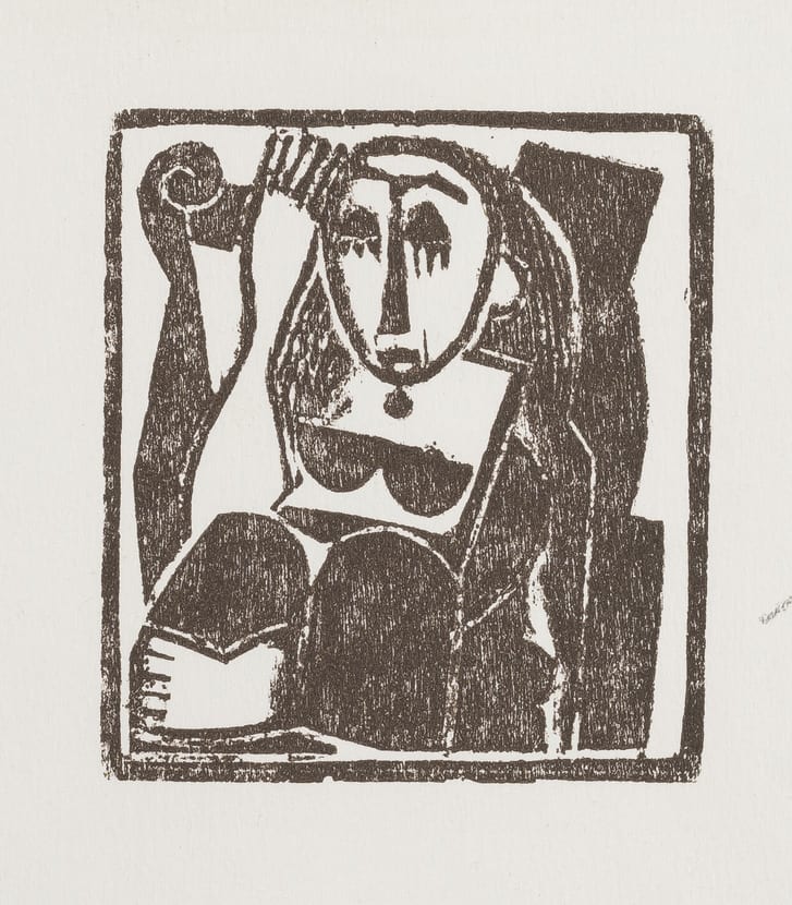 - Woodcut or linoleum on paper
