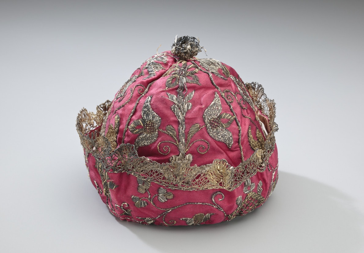 - Silk: embroidered with metallic thread; metallic lace