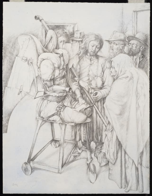 - Graphite and watercolor on paper