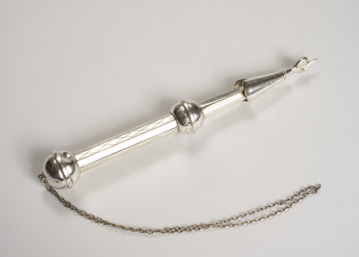 - Overall (without chain): 11 1/8 × 1 3/8 in. (28.3 × 3.5 cm) Overall (with chain): 22 1/4 × 1 3/8 in. (56.5 × 3.5 cm)
