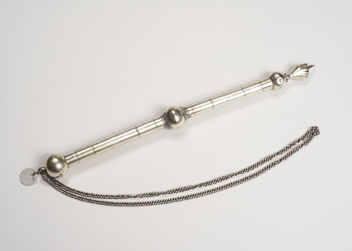 - (a): 6 15/16 × 7/8 in. (17.6 × 2.2 cm) (b): 6 5/8 × 1 in. (16.8 × 2.5 cm) (b, with chain): 19 1/2 × 1 in. (49.5 × 2.5 cm)