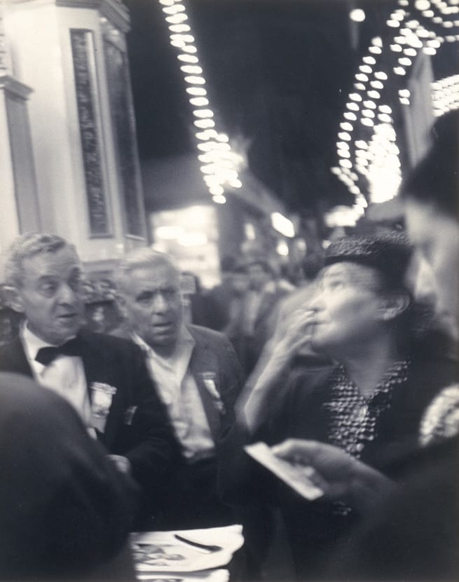 Mulberry Street is from Grossman’s series on the Feast of San Gennaro in Little Italy. Already a popular subject for photographers, the festival was the perfect setting in which to continue to experiment. Here, through various innovative formal techniques, he renders the experience on a visceral, personal level, drawing the viewer into the energized street scene