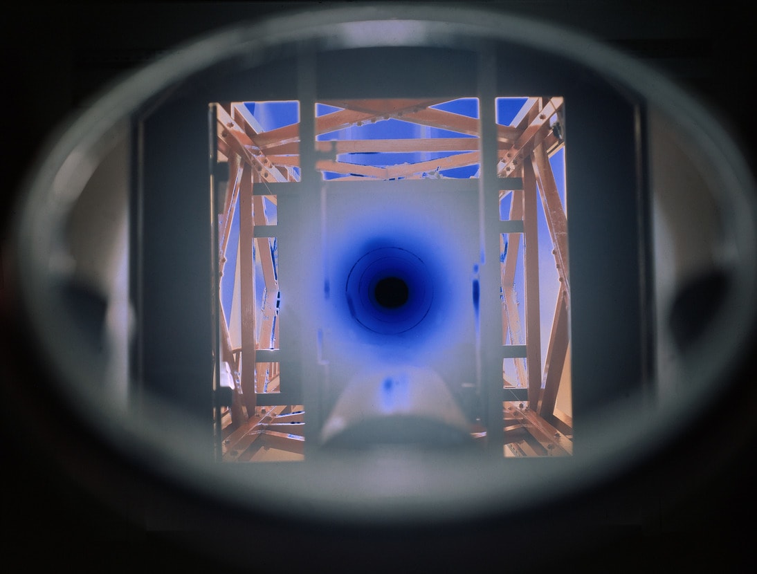 Catherine Yass's photographs are compelling interior views of architectural sites. Here she focuses on the Einstein Tower in Berlin (constructed between 1920-24) to evoke the charged nature of its architectural and scientific history while confronting two icons of pre-World War II German-Jewish culture: Jewish expressionist architect Erich Mendelsohn, who designed the tower, and Albert Einstein. Yass placed her camera in front of a mirror in order to intercept the light filtering into the tower and capture the moment of transition from white to colored light.
