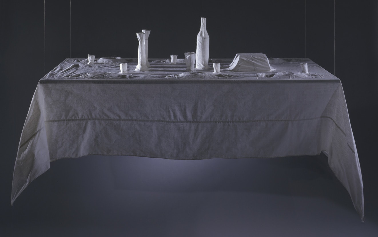 In response to a competition entitled "Borders of Sanctity," Studio Armadillo chose to explore the subject through the covers used for Jewish ritual objects. Does the cover make the essence holy, or is the cover holiness itself? Inspired by a Hasidic story in which the Sabbath table, whether set on the Sabbath or on a weekday, was found to evoke the spirit of the holy day, the artists created a cover for the Sabbath table and its contents.