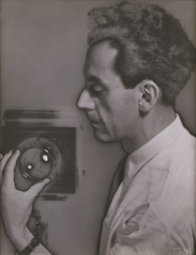 Man Ray's self-portrait exemplifies the analytical manner in which the artist, like Marcel Duchamp, realized the artifice of identity in exploring and shaping his own persona. Solarized and luminous, Man Ray here projects his self-confidence and the successful professional status that he had achieved in Paris by the 1930s.