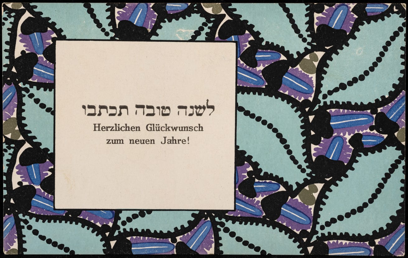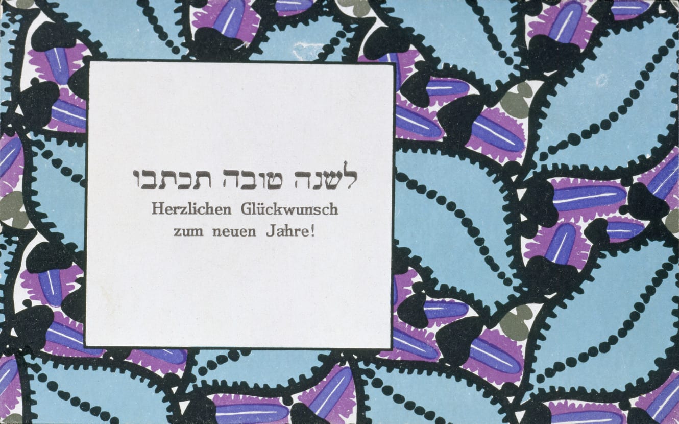 The Wiener Werkstätte, or Viennese Workshops, created simple, geometric designs for items such as textiles, furniture and jewelry. The workshops produced over one-thousand postcards that incorporated their artists' textile designs, including a group of Jewish New Year cards.