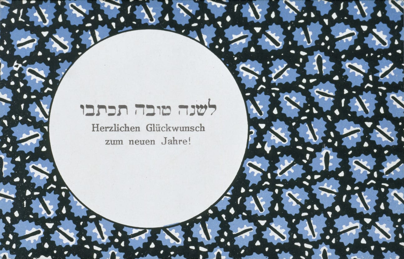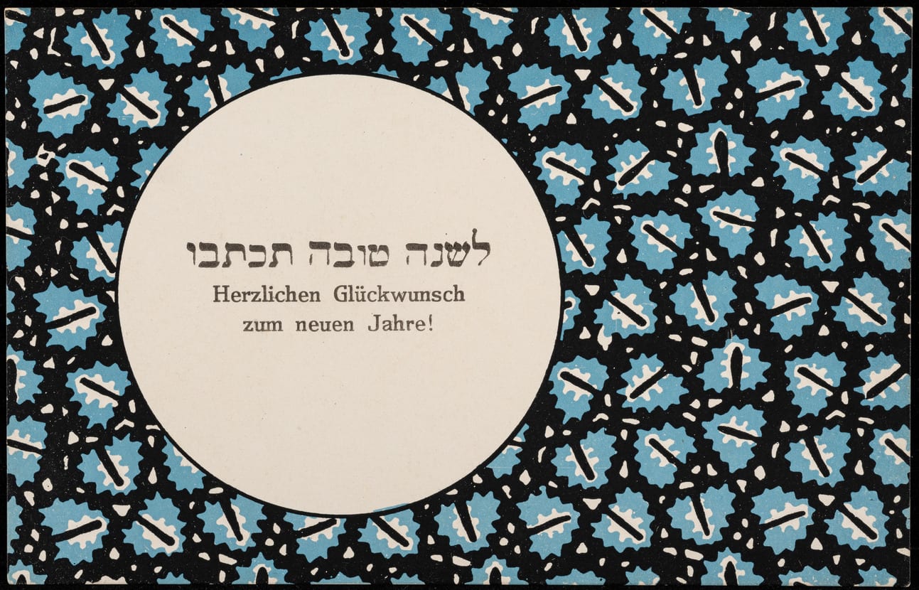 The Wiener Werkstätte, or Viennese Workshops, created simple, geometric designs for items such as textiles, furniture and jewelry. The workshops produced over one-thousand postcards that incorporated their artists' textile designs, including a group of Jewish New Year cards.