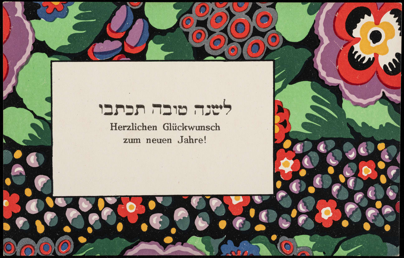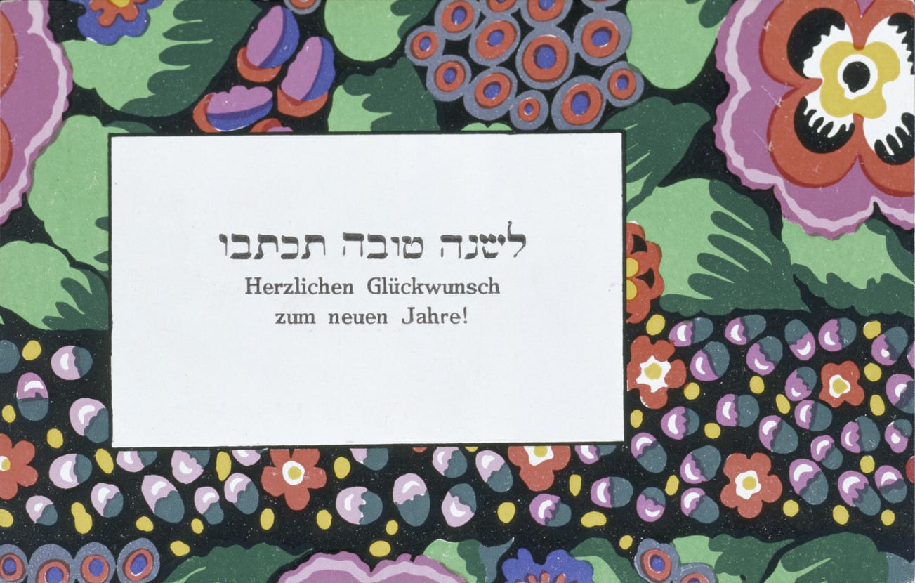 The Wiener Werkstätte, or Viennese Workshops, created simple, geometric designs for items such as textiles, furniture and jewelry. The workshops produced over one-thousand postcards that incorporated their artists' textile designs, including a group of Jewish New Year cards.