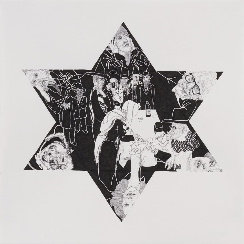 The seven drawings that comprise Sephirot are a "game piece" that take my ongoing time-based work into an exploration of omer, the seven-week period between Passover and Shavuot. Each week is sequentially represented by a Star of David, containing seven geometric elements. Using events of Jewish concern as a parameter, I created a drawing each day throughout this period. For the duration of the omer I became the proverbial "wandering Jew", and the drawings chronicle my journey. The omer binds the notion of Passover's freedom to Shavuot's practice of ritual. The ritualistic parameters and constraints that I select afford me greater creative freedom.