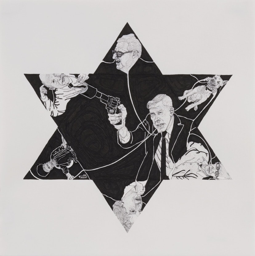 The seven drawings that comprise Sephirot are a "game piece" that take my ongoing time-based work into an exploration of omer, the seven-week period between Passover and Shavuot. Each week is sequentially represented by a Star of David, containing seven geometric elements. Using events of Jewish concern as a parameter, I created a drawing each day throughout this period. For the duration of the omer I became the proverbial "wandering Jew", and the drawings chronicle my journey. The omer binds the notion of Passover's freedom to Shavuot's practice of ritual. The ritualistic parameters and constraints that I select afford me greater creative freedom.