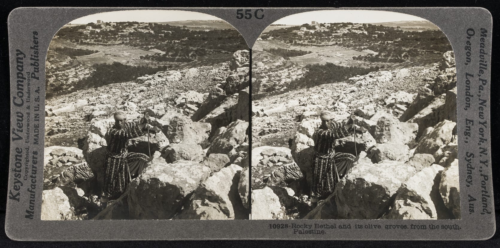 - Rocky Bethel and its olive groves, from the south. Palestine