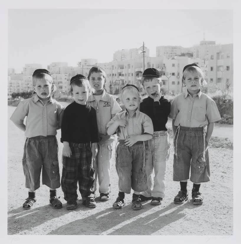 Artist statement: This is the story of one family. It is the entire Jewish-Israeli narrative embodied in a single family. This is my family. To the big question of Jewish-Israeli identity, the photographs of my family provide a kaleidoscope of answers. The point of departure for the exhibition is the photograph of my mother, Rivka, and her two sisters, Leah and Esther. Consecutive serial numbers are scorched on their left arms: A-7760, A-7761, A-7762. Thus, in this order, they lined up in Auschwitz in the spring of 1944 to be tattooed. They didn't know then whether they would live to see the next day. Today all three live in Israel; they have 31 grandchildren, and two of them have 40 great grandchildren. My mother, Rivka Kahana, nee Greenwald, emigrated from Czechoslovakia in 1947. Her parents and two of her seven siblings perished in the death camp. The survivors immigrated to Palestine. My father, Aharon Kahana, like some of his brothers, fled pre-war Europe in 1939, emigrating from Czechoslovakia to Palestine. His parents and three of his eleven siblings died in Auschwitz as well. Some of the survivors immigrated to Israel; others went to the United States of America. Family cohesion was a sacred value to my parents and their siblings; a superior value, above all dispute over worldview, ideology, or religion. The family ties were close-knit and infused with the sense of an existential necessity. It was an affinity that stemmed from the oath which members of that generation pledged to one another – to meet after the war and set up their homes once again, close to each other. They arrived in Israel penniless, and everyone helped everyone. Those who immigrated first absorbed those who followed. At every opportunity my mother and her sisters recounted their stories to us, how they rescued one another during their stay in Auschwitz. This life-and-death connection continued to exist between them after they immigrated to Israel. We, the children, who absorbed this sense of deep kinship, spent long holidays together, during which we stayed with our cousins in Jerusalem, in Kibbutz Kfar Masaryk in the country's north, in the Orthodox city of Bnei Brak, and in the Tel Aviv northern neighborhood Maoz Aviv, and hosted to full capacity many cousins in our small Tel Aviv apartment, above the family-owned grocery, in the spirit of that same existential mission bequeathed to us by our parents. I started photographing my mother during my studies at the School of Art, Over the years I expanded the documentary practice to photograph my extended family as well: uncles, aunts, cousins and their offspring. Four generations. The more I advanced in the documentary process, the better I realized that my family represents the very essence of Jewish-Israeliness. Documenting my relatives' lives sent me on long journeys the length and breadth of the country, as well as overseas. I crossed ideological and mental boundaries. I moved between Hashomer Hatzai'r leftist-Zionist kibbutzim in the country's north to Jewish settlements in the West Bank. Between the settlement of Susya in the Southern Hebron Mountains to the affluent Tel Aviv suburb of Savyon, between Jerusalem and Tel Aviv, Bnei Brak and Copenhagen, Petach Tikva and Caesarea. My journey oscillated from "left" to "right," from ultra-Orthodox realms to completely Epicurean homes. In my childhood we lived in Tel Aviv, very close to the beach. We spent long summer vacations with our cousins, playing childhood games on the warm sand. The same cousins, who in the meantime have raised a third and fourth generations, now live in settlements in northern Samaria, at the heart of Hebron, and in Judea. Not only have the ties between my cousins and me ceased to be an existential necessity, as were my parents' ties with their siblings, but a political and religious gulf now divides us, often leading to an actual rift. Geography is metonymic of that ideological chasm separating the different family factions: Today, when we are parents ourselves, the need for extended family intimacy has become dulled. I am certain that in the next generation this tie will further lose the little left of our parents' pact ever-so-vivid during my own childhood. Is it the ideological gap that pushes us apart, eliminating any chance for common ground whatsoever? Probably.