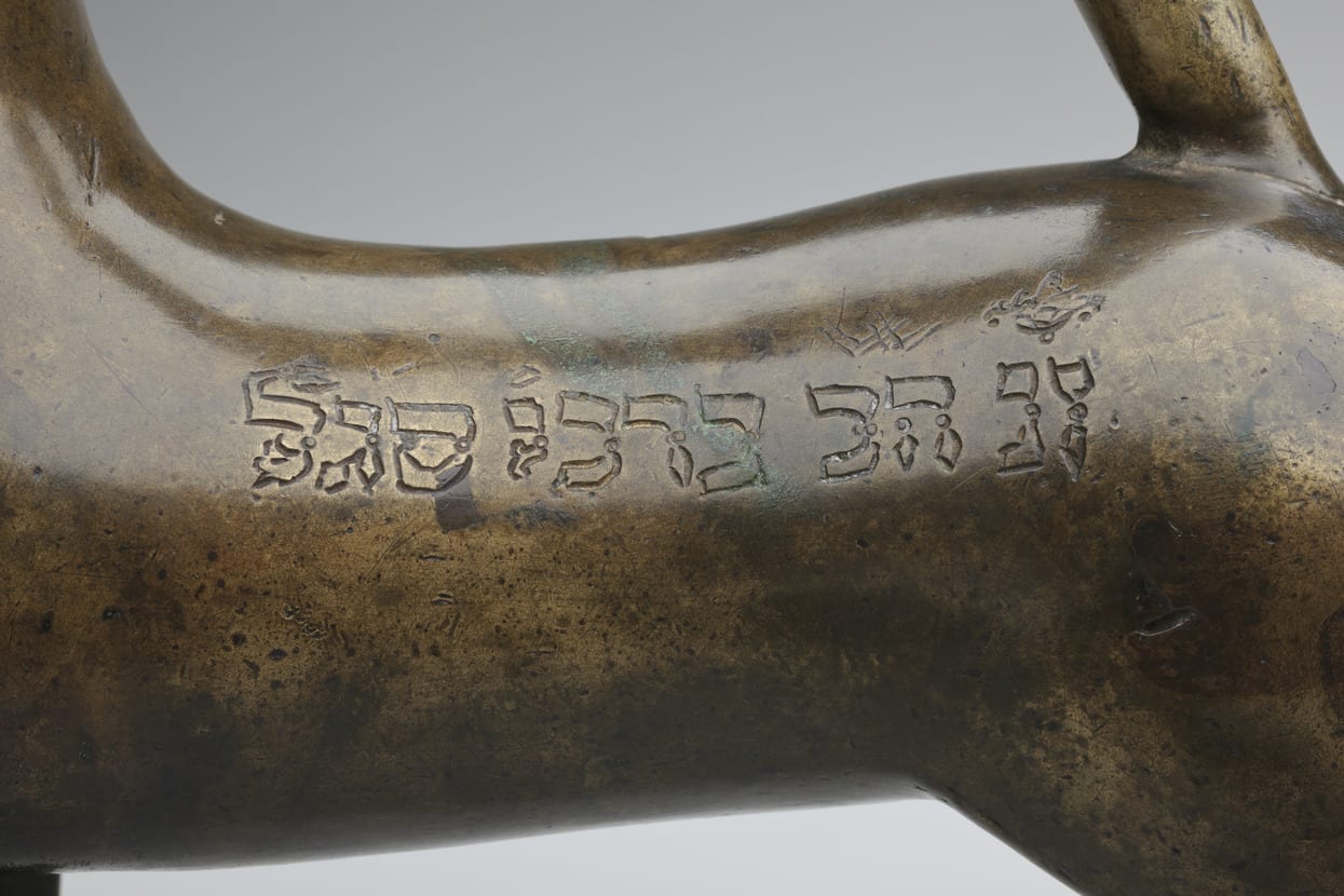 In the twelfth century fanciful pitchers in animal and human form came into use for handwashing rituals in European churches and synagogues, and for home use. This vessel in the form of a lion bears a Hebrew inscription, probably added several centuries later: “This is a donation of the honored Berekhiah Segal.” With these simple words, the ewer takes its place among those rare Jewish ceremonial works that have survived from the Middle Ages. The name Segal is an abbreviation for “Levitical assistant,” identifying the donor as a descendant of the family of Levi, responsible for aiding priests. It likely was used during the synagogue service, when Levites wash the hands of the descendants of ancient priests before they recite the priestly blessing.