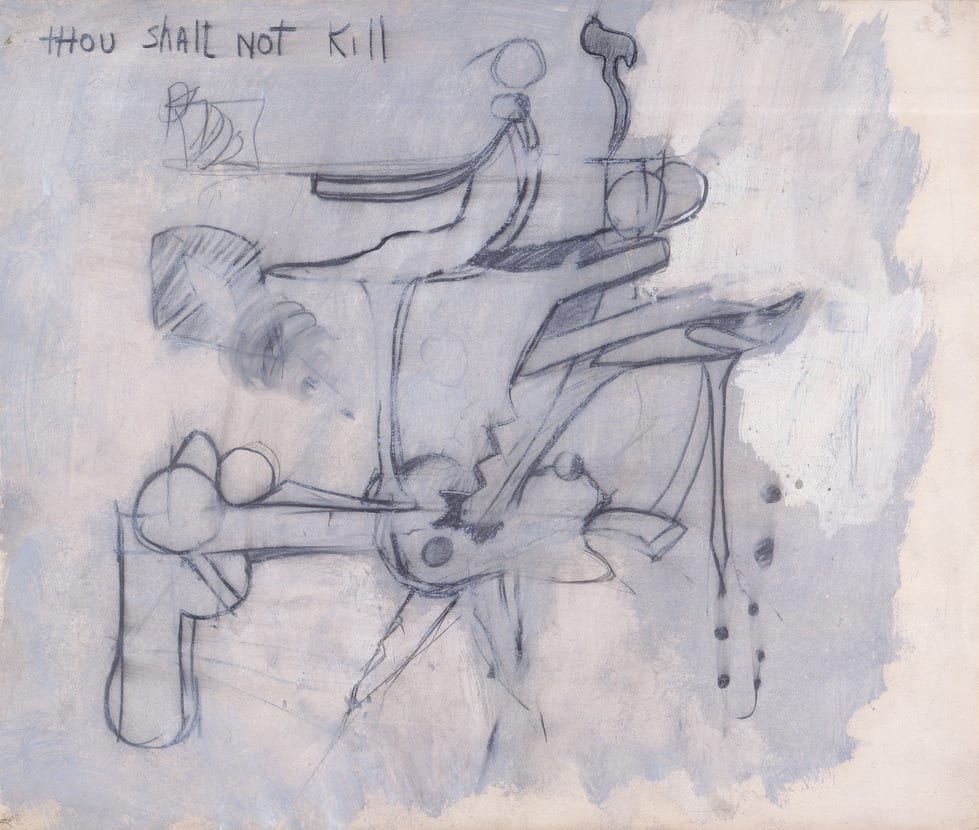 In 1954 Larry Rivers executed a series of maquettes of the Ten Commandments for a synagogue in Connecticut, which were ultimately rejected by that institution.