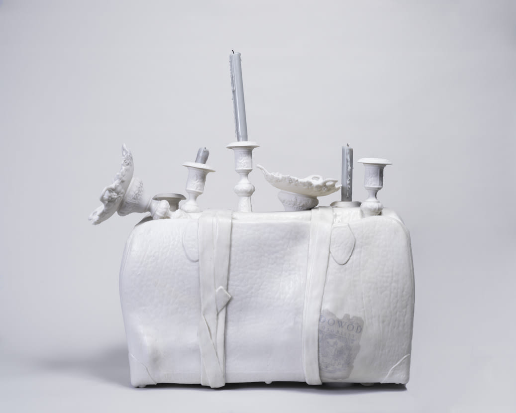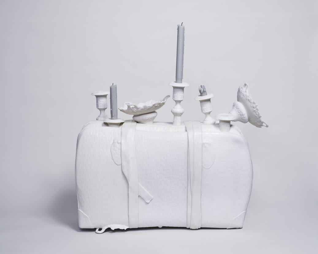 Three more iterations of the work are planned. The artist has embedded an image of the cover of her grandmother’s passport in the sculpture and will ask each subsequent owner to give her a cherished family record, which she will also embed in the piece. Thus, Travel Light will accumulate new stories, as a suitcase acquires travel labels, embracing the future as well as the past.