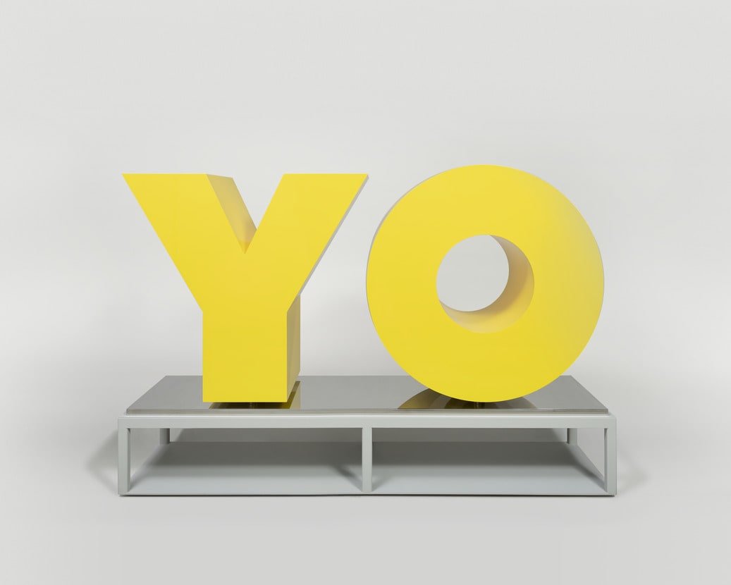 Since the 1980s, Deborah Kass has riffed on modern artworks by famous white men to reflect her experience as a Jewish lesbian. Here, Kass remakes Robert Indiana’s LOVE (itself a coded homage to queer male desire) with the twinned words oy (a Yiddish exclamation of alarm or bother) and yo. The artist considers herself to be a “total, absolute, 100 percent provincial New Yorker.” This work uses the city’s culturally specific, yet universal lingo to communicate the collective pride and exasperation of living here. Originally conceived as a monumental sculpture, it was installed for a limited time in Brooklyn Bridge Park. OY/YO became an instant New York icon and photo op for tourists and residents of all backgrounds, for whom the pluralistic spirit of the double- sided interjection resonated deeply.