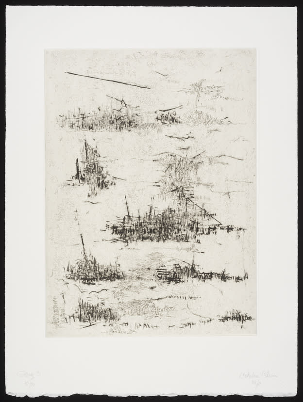 - Hard- and soft-ground etching on paper with chine collé and dry point