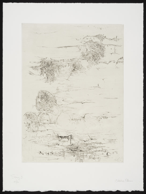 - Hard- and soft-ground etchings on paper with chine collé and dry point