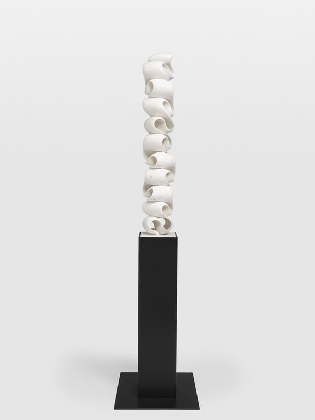 Turk salvaged the marble used to make this sculpture from the renovation of the Getty Villa, a museum of classical art in Malibu, California. Employing a medium long associated with permanence, she pays tribute to the elegant forms of calligraphic script that, in a world increasingly dominated by keyboards, threaten to vanish.