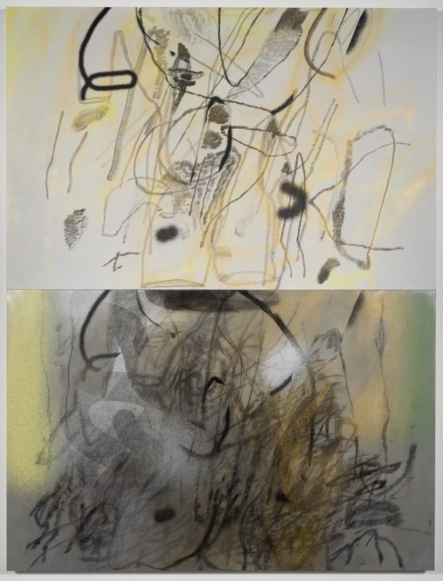 Julie Mehretu has reinvented landscape painting for the twenty-first century in her cerebral, technically ingenious, and technologically inflected compositions. Mehretu is interested in the structure of the urban environment, migration, and the various networks that form the bedrock of modern life. These networks include transportation, telecommunications, finance, as well as legal, cultural, and linguistic systems that undergird our interactions and even our personhood. Mehretu renders this tangled web in magisterial paintings that often contain intricate drawings. In abstract works such as O Salmacis the artist’s physical gestures while creating the painting are evident, perhaps referring to written language or other systems of notation. The bottom portion of the piece looks as if it is submerged in a tank of murky liquid, perhaps a reference to the water nymph from Greek mythology who is invoked in the work’s title.