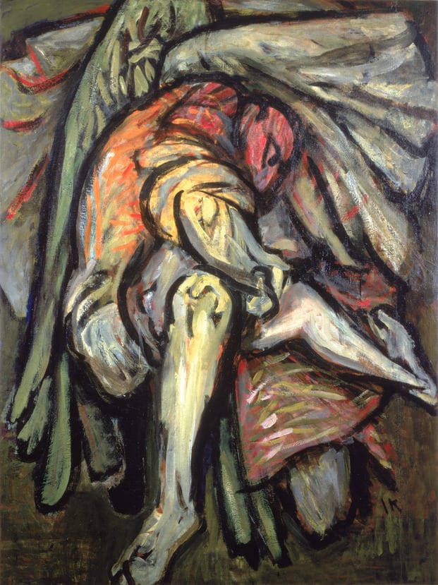Inspired by the work of Mexican muralists José Clemente Orozco and David Alfaro Siqueiros, Irving Kriesberg based his paintings on both personal history and cultural heritage. In Jacob's Struggle, the traditional biblical story becomes a metaphor for moral struggles--both individual and societal--in the wake of World War II. Kriesberg fuses the figures of Jacob and the Angel in a spiraling maelstrom, focusing on the expression of conflict rather than on narration of the story.