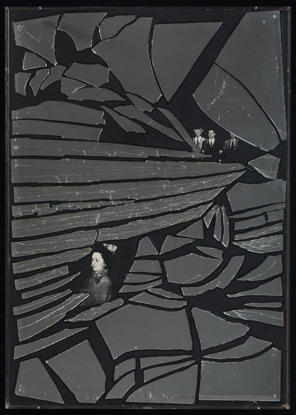- Wood; masonite; cracked mirror; acrylic paint; photocopied photographs
