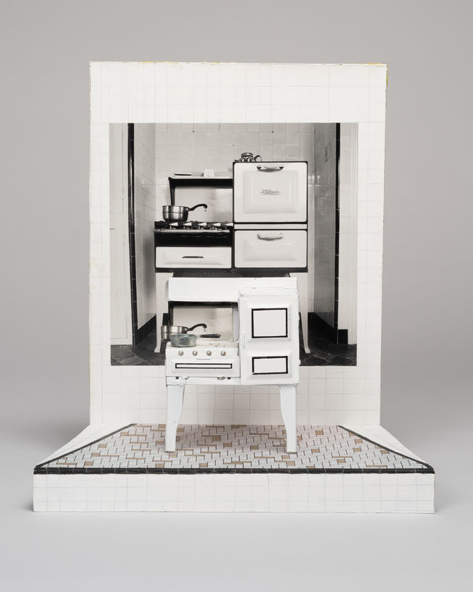 - Tin, gelatin silver print, printed paper, and acrylic vitrine