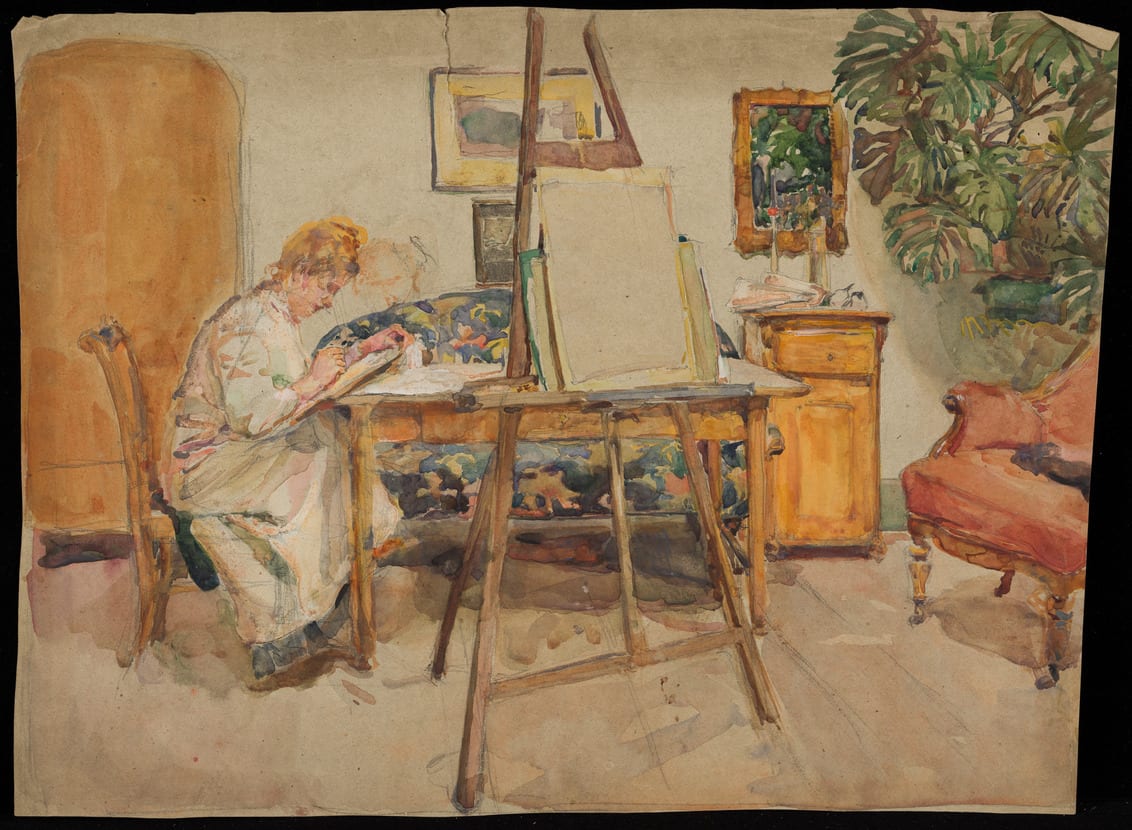 - Watercolor and graphite on paper