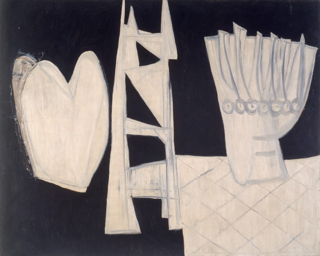 In 1950 architect Percival Goodman asked the painter Robert Motherwell to create a mural for the entry hall of Congregation B'nai Israel in Millburn, NJ. This preparatory study shows abstracted Jewish symbols which Motherwell incorporated into his final design.