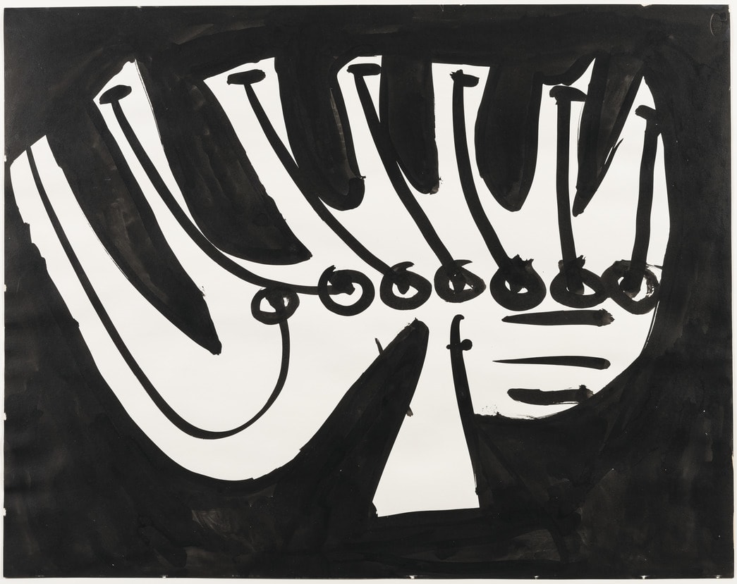 These works highlight the generous donation of numerous studies for Robert Motherwell's mural, Tablets, Ark and Candelabrum, created for the Congregation B'nai Israel synagogue in Millburn, New Jersey. For an artist whose career is based purely upon abstraction, the mural and these studies are the only examples of representational works in his oeuvre.