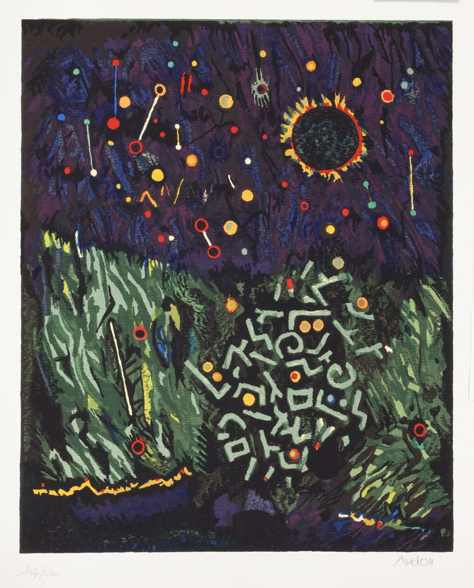 This edition contains three hand printed serigraphs by Mordecai Ardon, based on three tapestries after a triptych by the artist and executed by the Atelier Georges Goldstein, Jerusalem for the Yeshiva University of New York.