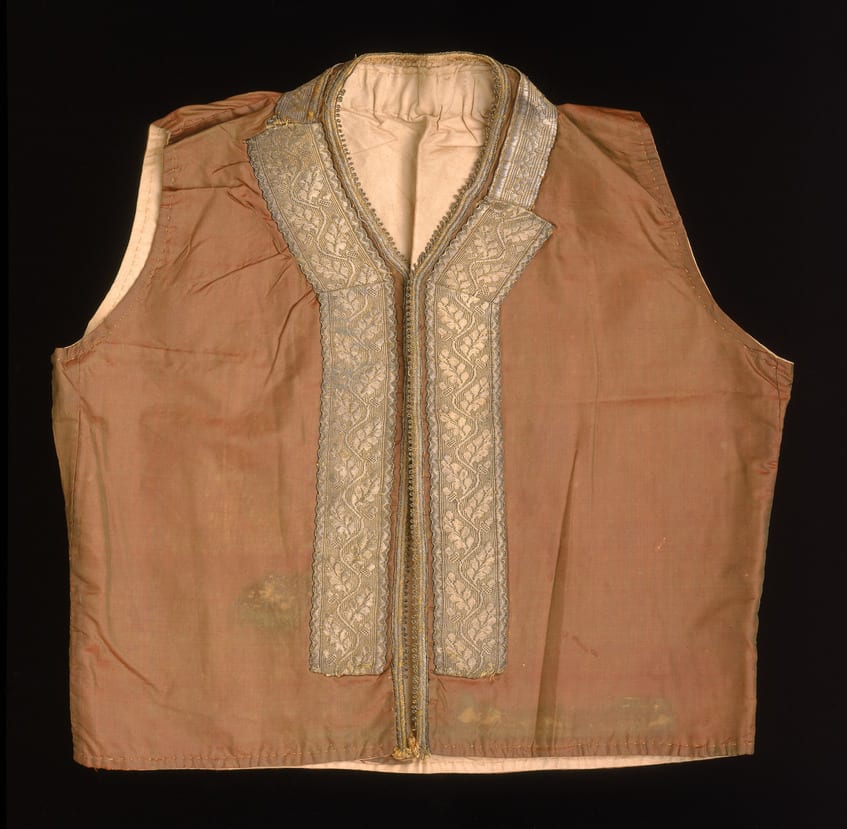 This vest was worn by the donor as part of a Purim costume of Queen Esther that also included a crown and a sash. (1997-44a and 1997-44c)