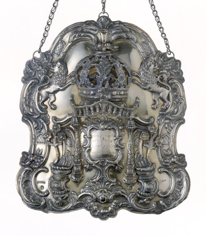The Hebrew inscription indicates this piece was donated in rememberance of Isaac son of the late David ha-Levi Speyer in the 1920s.