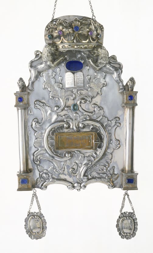- Silver: repoussé, parcel-gilt, cast, and engraved; glass stones