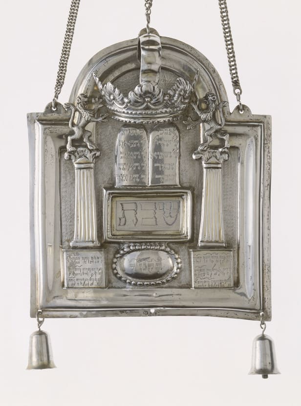 This shield bears a Hebrew inscription naming the donors to the synagogue: The leader Wolf son of Lipmann and his wife, Miriam, daughter of Solomon Katz.