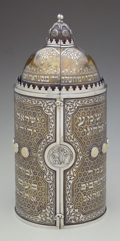 - Brass: chased, filigree, and silver-plated; silver: inlaid and repoussé; ivory: carved