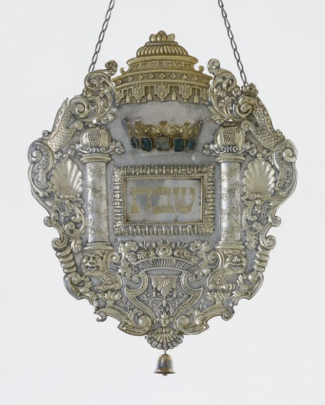 - Silver: repoussé and parcel-gilt; glass (not original)