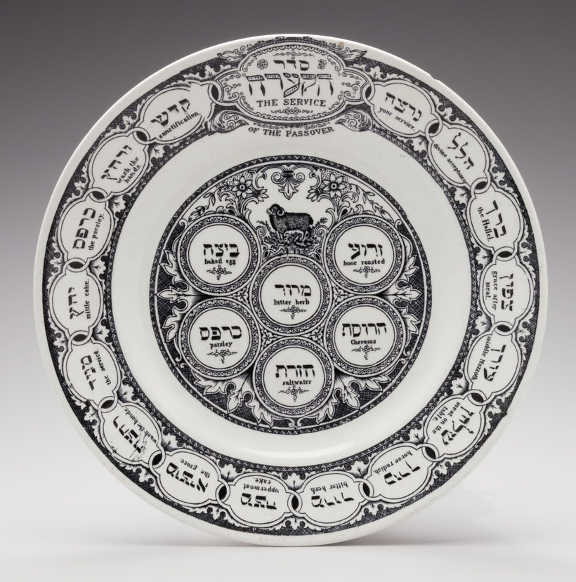 The tradition of a special plate or basket for the seder foods originates in a reference in the Mishnah (first–second century CE), recording older customs, but there is no record of how it was decorated. In Europe in the sixteenth century, artisans began making seder plates with scenes from the Passover story, or of the table and its guests. In one tradition, the decoration establishes the order and placement of the symbolic foods. Some of these plates are explicitly intended to hold those foods; others may have had a more general Passover use.